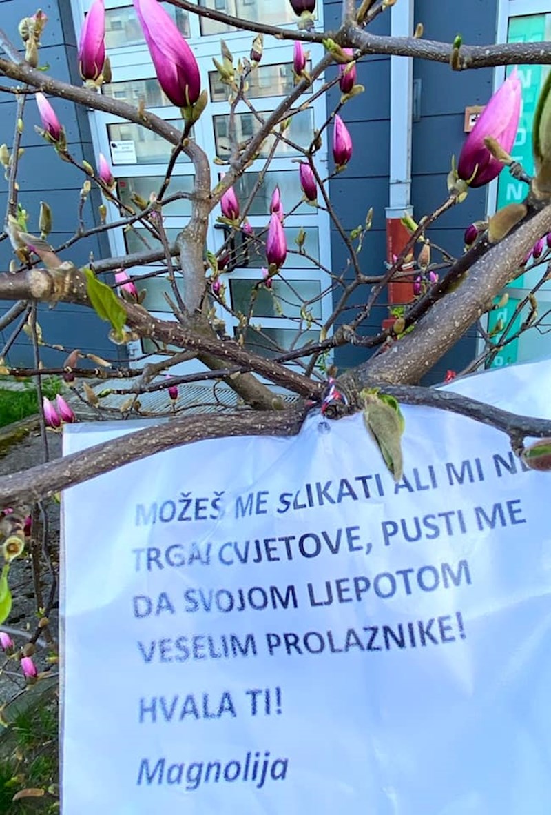 Netko je ostavio poruku na procvjetaloj magnoliji i opomenuo sve nemarne susjede