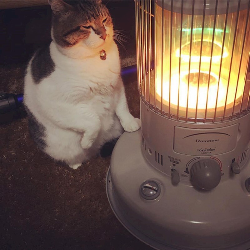 Naime, njegov vlasnik tvrdi da se, otkad je donio grijalicu u stan, njegov mačak ne odvaja od nje. Jedini trenuci kad nije u blizini svoje ljubljene grijalice je kad ide nešto prizalogajiti i obavljati nuždu.