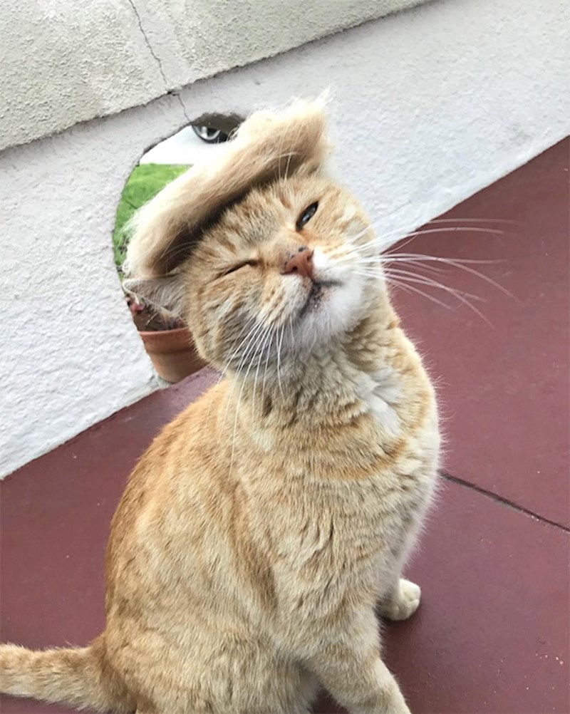 Naime, nakon što počešljaju svoje mačke, na glavu im stave dlaku koju su odstranili i one se za čas pretvore u pravog životinjskog Trumpovog dvojnika.
