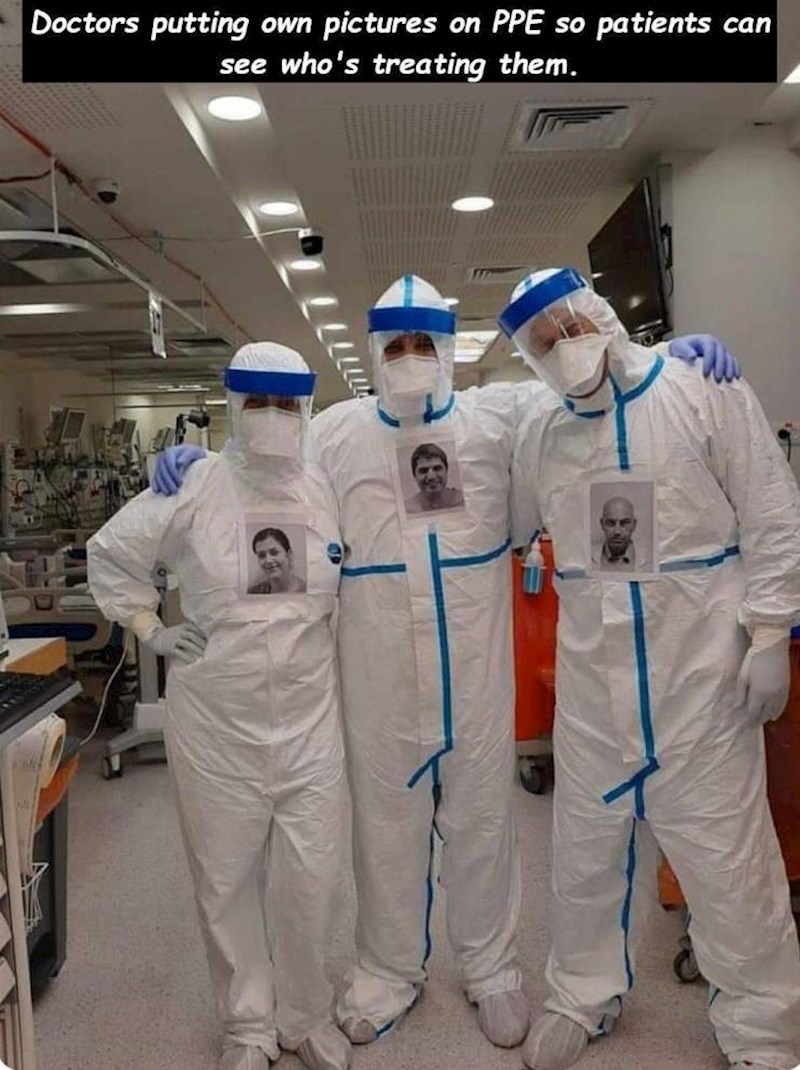 Ali ovi kreativni doktori pronašli su rješenje pomoću kojeg njihovi pacijenti oboljeli od koronavirusa u svakom trenutku znaju tko je ispod svih tih slojeva zaštitne oprema.