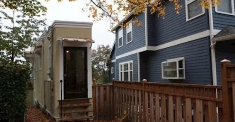 Par koji se razvodio morao je podijeliti posjed na kojem su prije zajedno živjeli. Suprug je uspio dobiti kuću, a svojoj bivšoj je dao samo manji dio okućnice. Umjesto da se odseli, žena je odlučila izgraditi svoj sićušni dom u prednjem dijelu okućnice. Kuća je jako uska i ima oko 80 kvadratnih metara na dvije etaže.