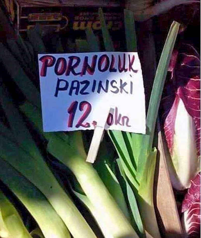 Tržnice su odličan izvor svježeg i domaćeg povrća i voća. Tamo uvijek možemo pronaći svježi sir, ali i nasmijati se simpatičnim nazivima artikala. Pogledajte kako je ovaj prodavač nazvao poriluk. :D