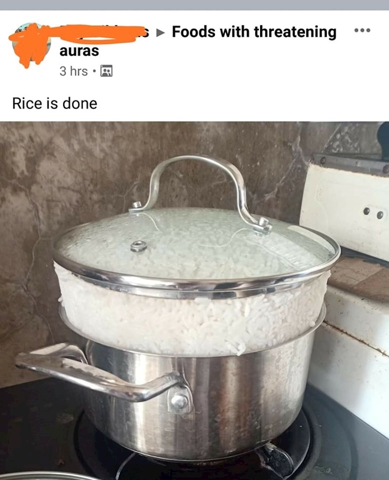 Ovaj lik odlučio je skuhati rižu, ali zaboravio je na jednu prilično bitnu stvar. Kada je ugledao konačan proizvod, sliku je objavio u jednoj Facebook grupi u kojoj ljudi objavljuju bizarne kulinarske pokušaje. Možda se idući put sjeti da riža upija vodu i bubri. :D