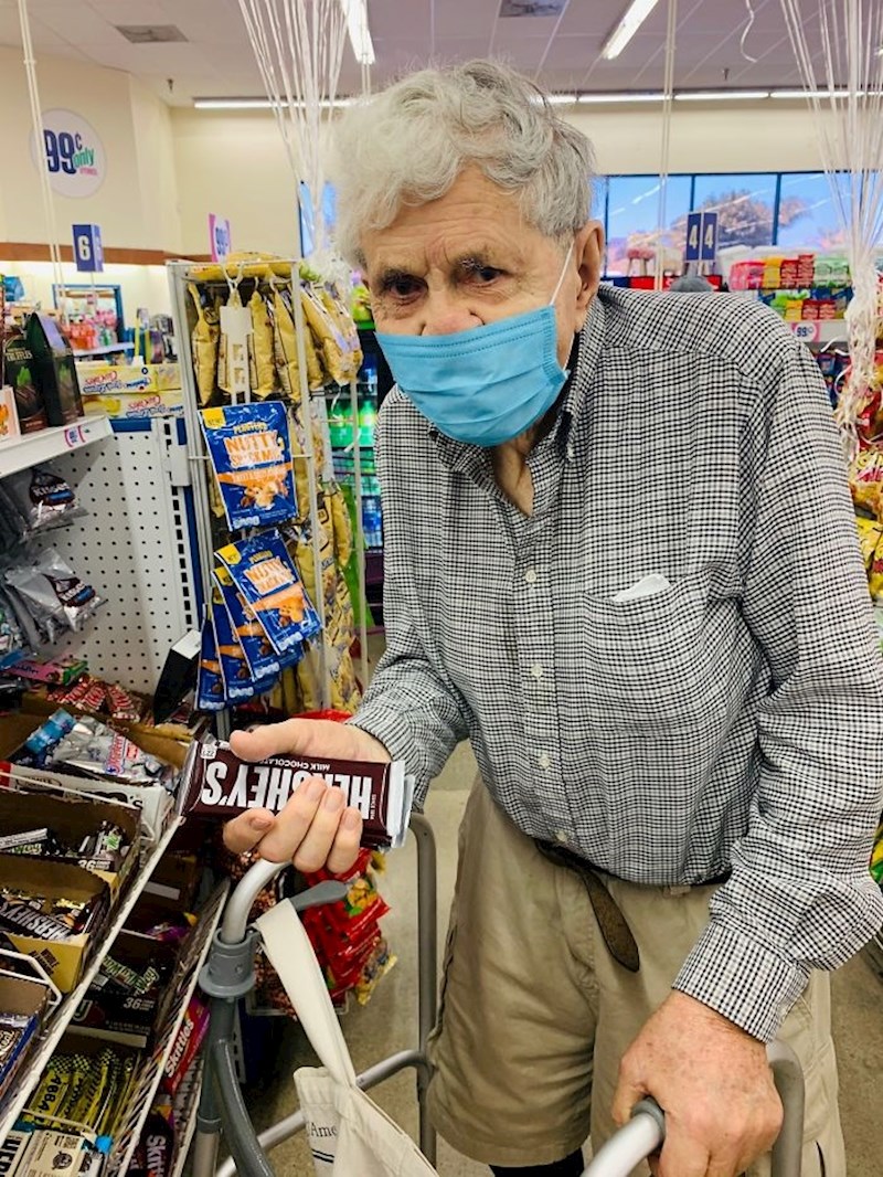 Richard je najprije mislio da djedica pokušava nabaviti hranu kako ne bi bio gladan tijekom karantene, no onda je u razgovoru s njim saznao pravu istinu. Zove se Mike, ima 93 godine, ima 94-godišnju ženu Doris i zajedno vole dijeliti Hersey čokoladice u večernjim satima. "Nestalo nam je čokoladica pa trebam kupiti 35 komada.", objasnio mu je starac.