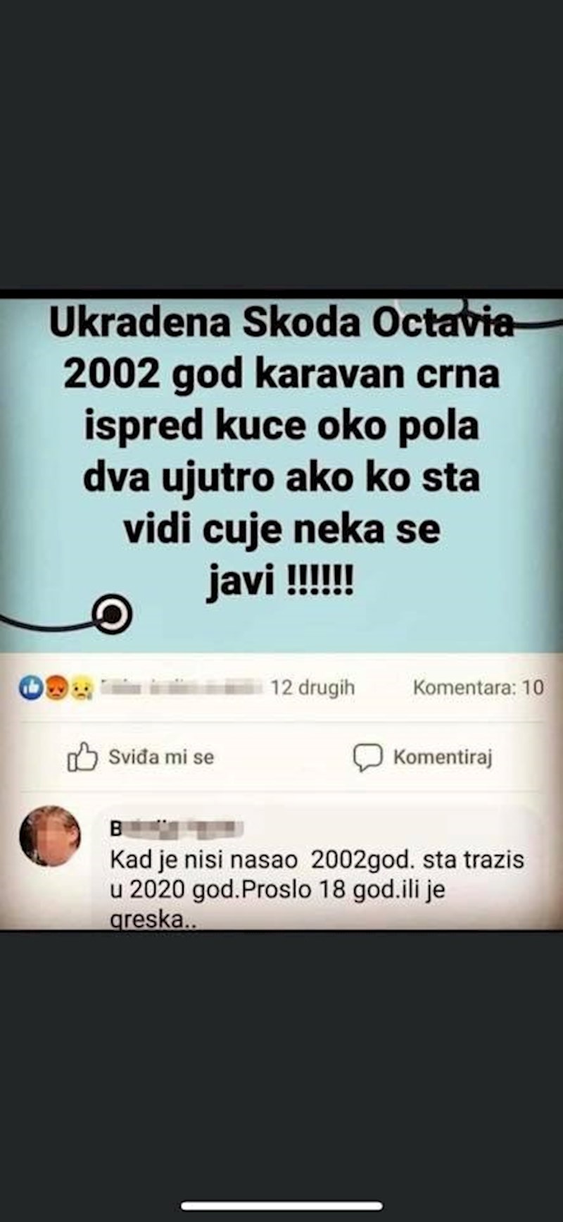 Ovom nesretniku netko je ukrao auto i odlučio je to podijeliti na svom Facebook profilu, u nadi da mu netko može pomoći. Jednog korisnika Facebooka nešto je u tom statusu zbunilo i svojim komentarom sve nasmijao. :D