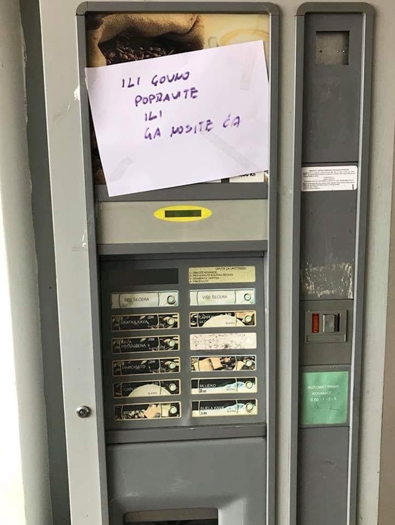 Ljudima je ovaj automat za kavu išao na živce pa je netko napisao poruku vlasniku