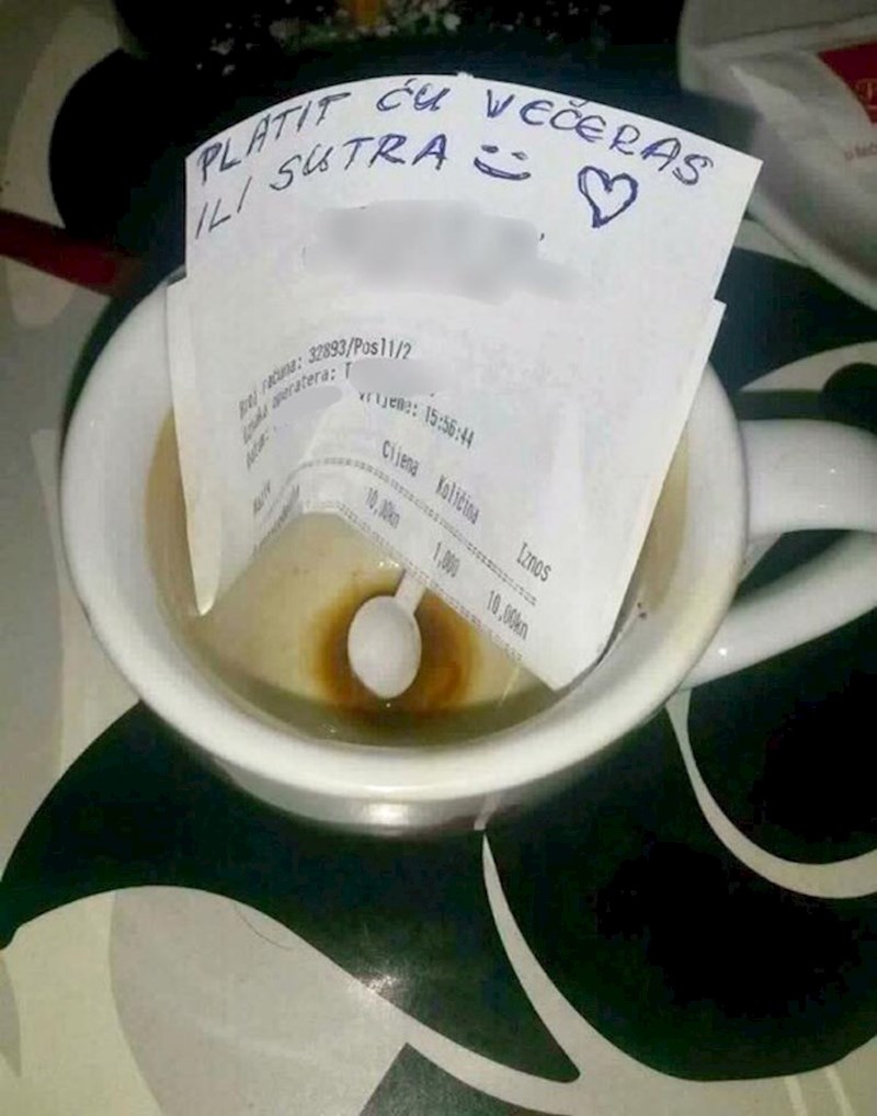 Konobarica je slikala što joj je napisao čovjek koji je popio kavu i jednostavno otišao