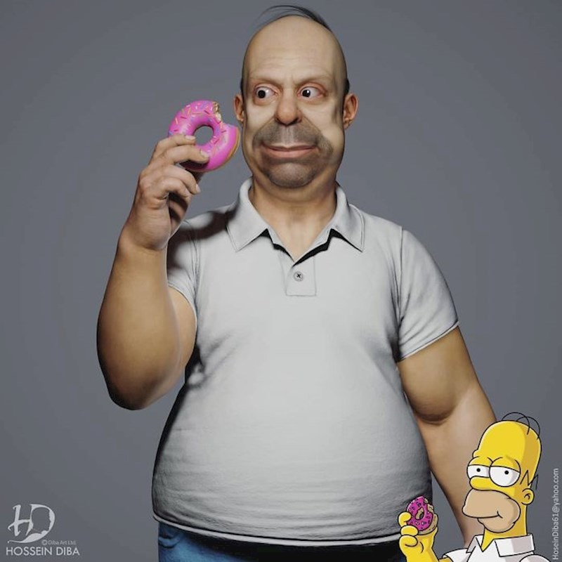 Navikli smo viđati Simpsone na našim malim ekranima , ali umjetnik Hossein Diba donosi nam potpuno novo iskustvo. Njegove su rekreacije popularnih likova toliko realistične, da izgledaju kao prave osobe. Umjetnik iz Turske specijalizirao se za izradu likova za igrice i crtiće, 3D printove, a njegove su vještine jednostavno ispred svih drugih.