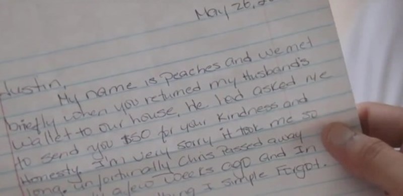 Nakon nekoliko tjedana dobio je pismo u kojem je pisalo nešto što ga je rastužilo. Pismo je napisala žena muškarca koji je tada izgubio novčanik.