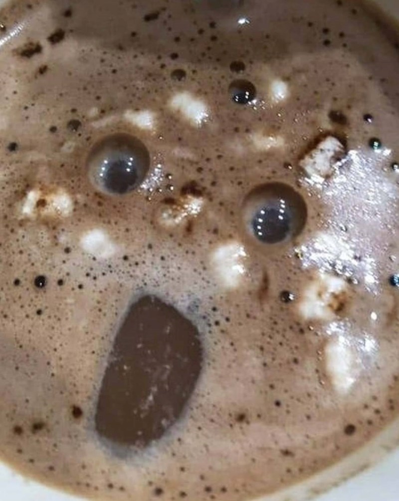 Lik se prilično iznenadio kada je vidio da ga netko vreba iz šalice kave, to mu je sigurno začinilo dan... :D