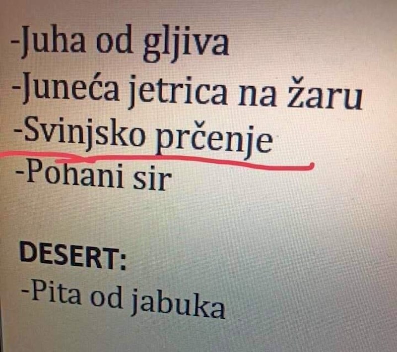 Ljudi su plakali od smijeha kada su vidjeli krivo napisano jelo na ovom jelovniku