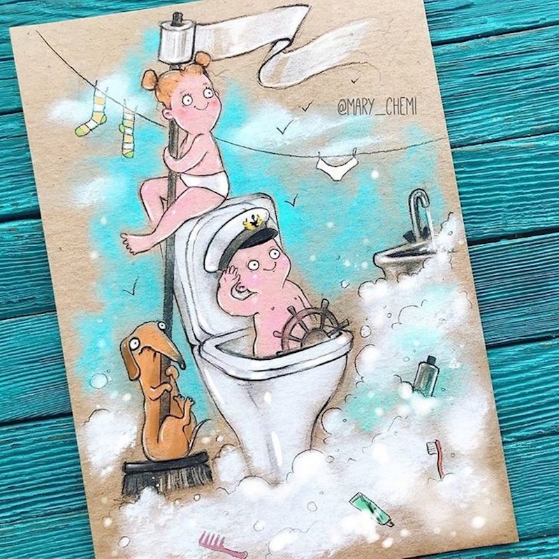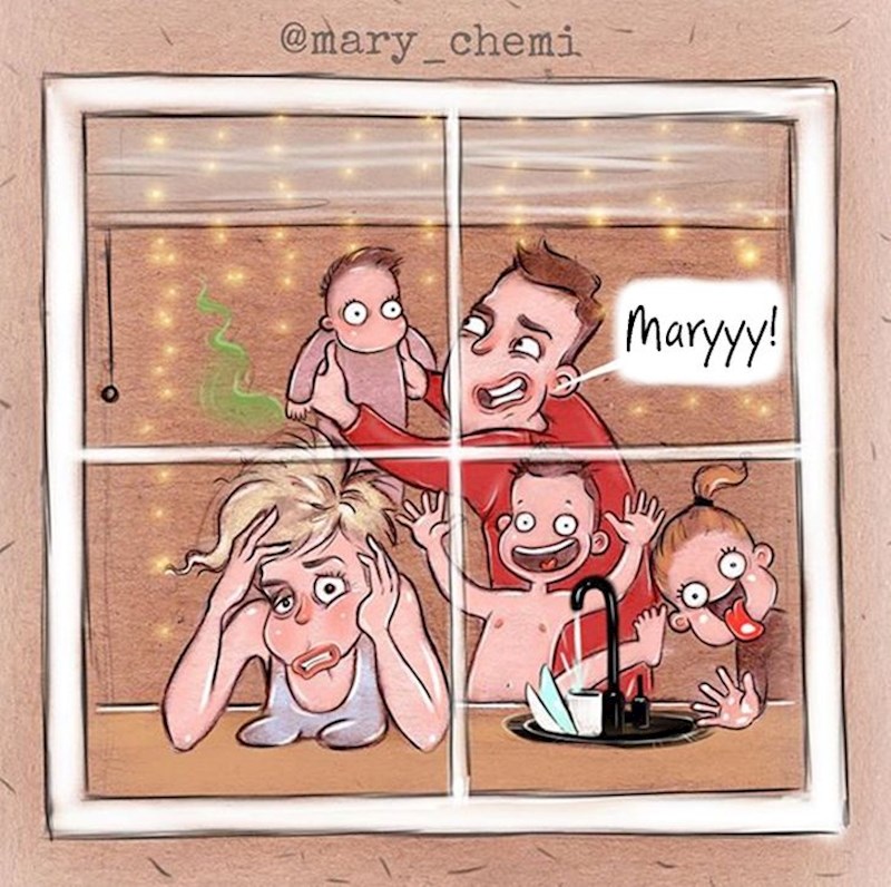 Maria Gorbunova je talentirana umjetnica it Rusije. Ona svojim ilustracijama prikazuje realne situacije koje proživljavaju mladi roditelji i zbog toga je osvojila mnoga srca. Njenu umjetnost možete pratiti na Instagram profilu mary_chemi.