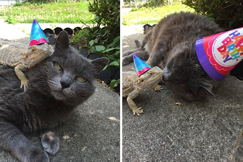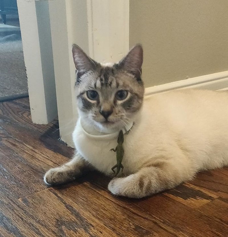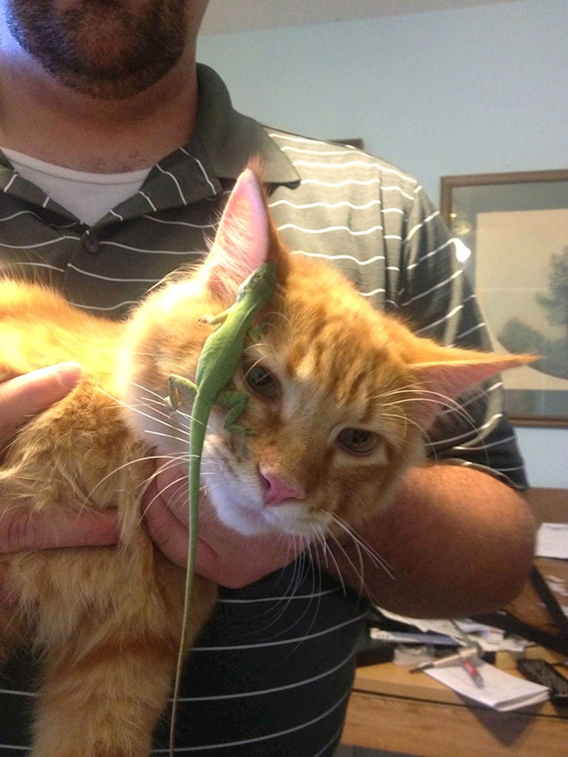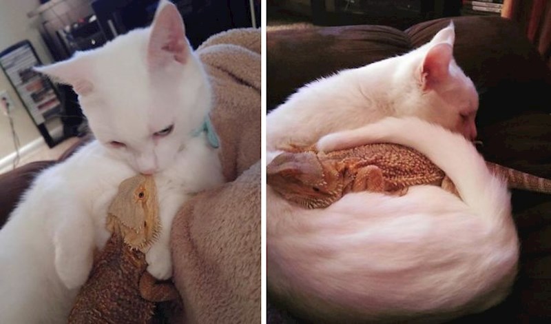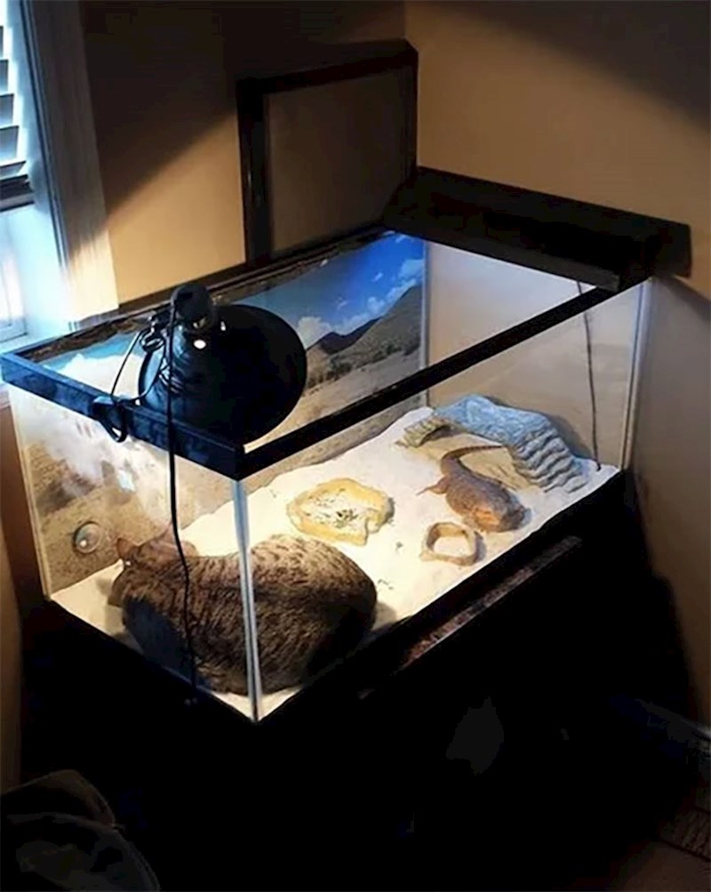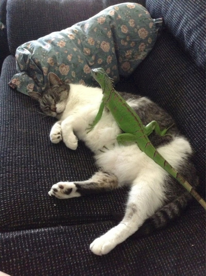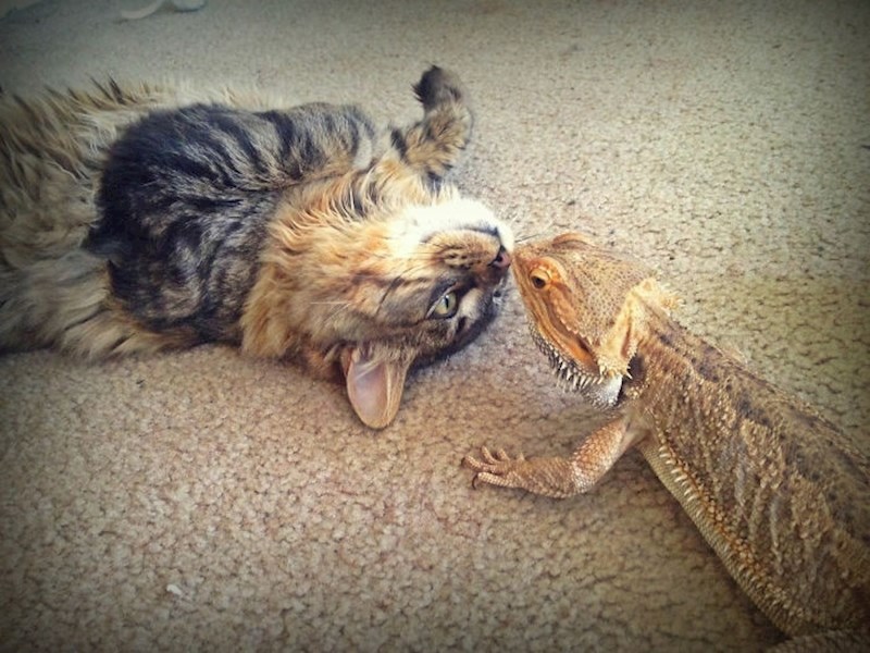 Teško je to zamisliti, ali mačke i gušteri su zapravo super par. Iako neke od slika izgledaju kao da nisu u najboljim odnosima, ove mačke i reptili stvarno su se sprijateljili. Ljudi su objavili svoje fotke koje izgledaju točno onako kako ih zamišljate - bizarno i smiješno. :D