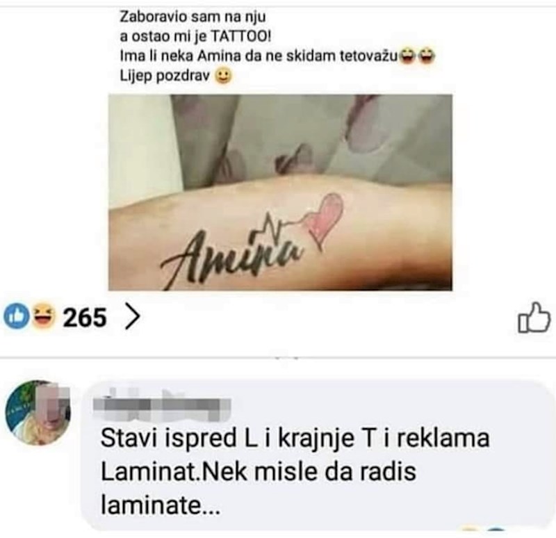 Preostale su mu dvije opcije - naći curu s istim imenom ili nekako promijeniti tetovažu. Fotku je podijelio na Facebooku, a u komentarima je dobio zanimljiv prijedlog... 😂