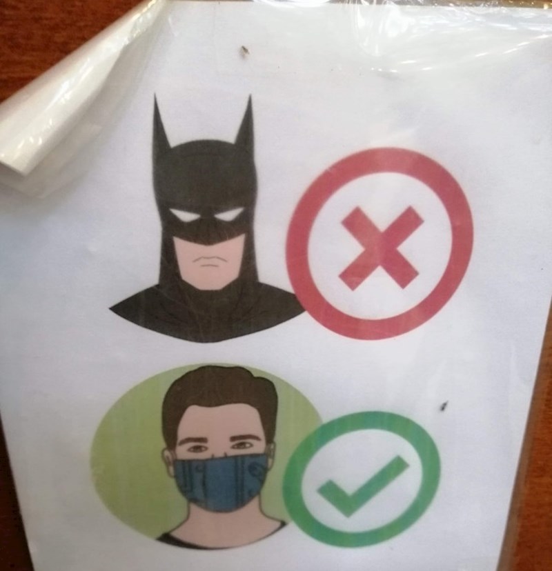 Do sada smo vidjeli maske svih vrsta, boja i oblika. Očito neki ljudi nose i maske superjunaka, pa je ovaj dućan morao napraviti upute kako izgleda maska koja štiti od virusa. :D