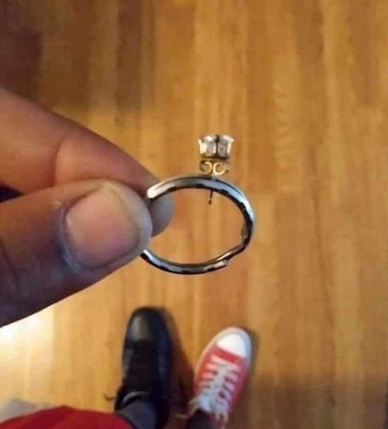 Što bi vi učinili da vam čovjek vašeg života dođe s ovakvim prstenom? Bi li u suzama pristali ili bi ipak pobjegli poput ove djevojke? Netko bi mogao reći da je mladić škrt, ali sigurno ima i puno onih koji misle da je najbitnija romantika. :)