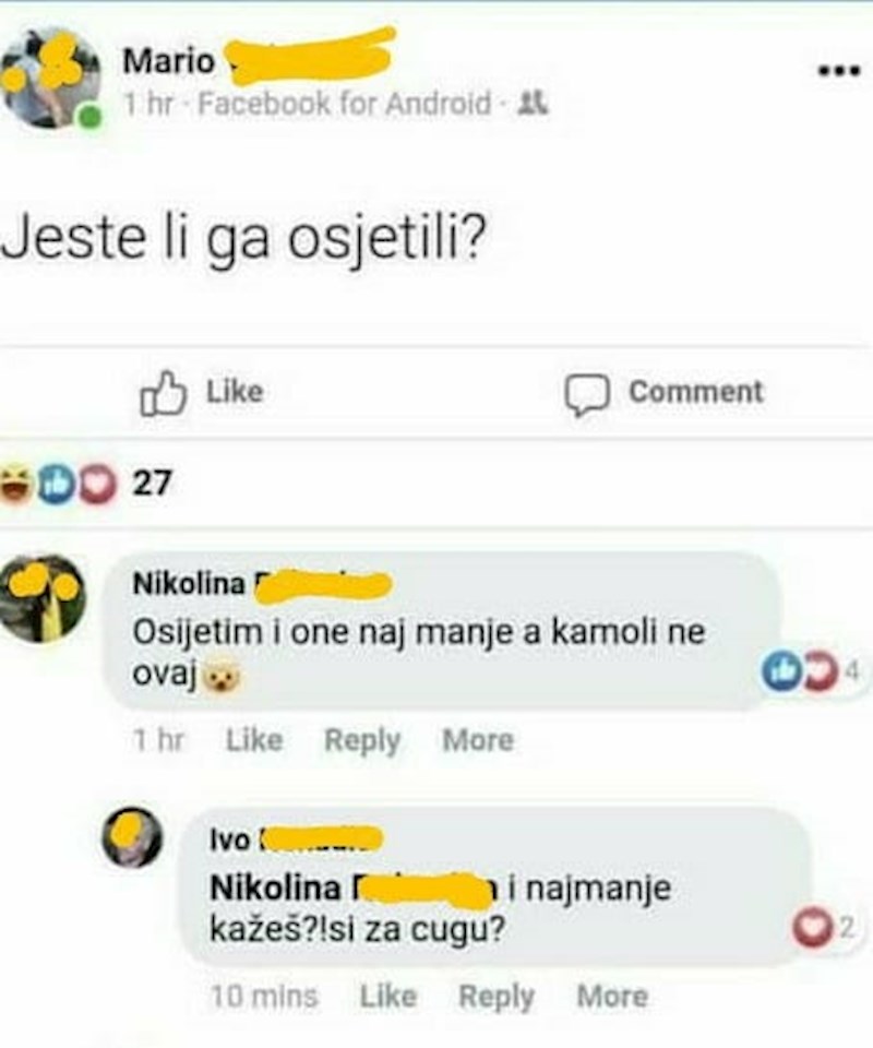 Mnogi Zagrepčani još uvijek strahuju od potresa, pa kada se dogodio još jedan, ovaj čovjek zapitao je prijatelje na Facebooku jesu li ga osjetili. Žena je napisala komentar o svom iskustvu ali neki lik je imao drugačije namjere... :D