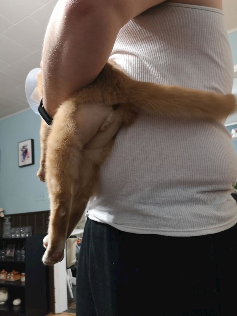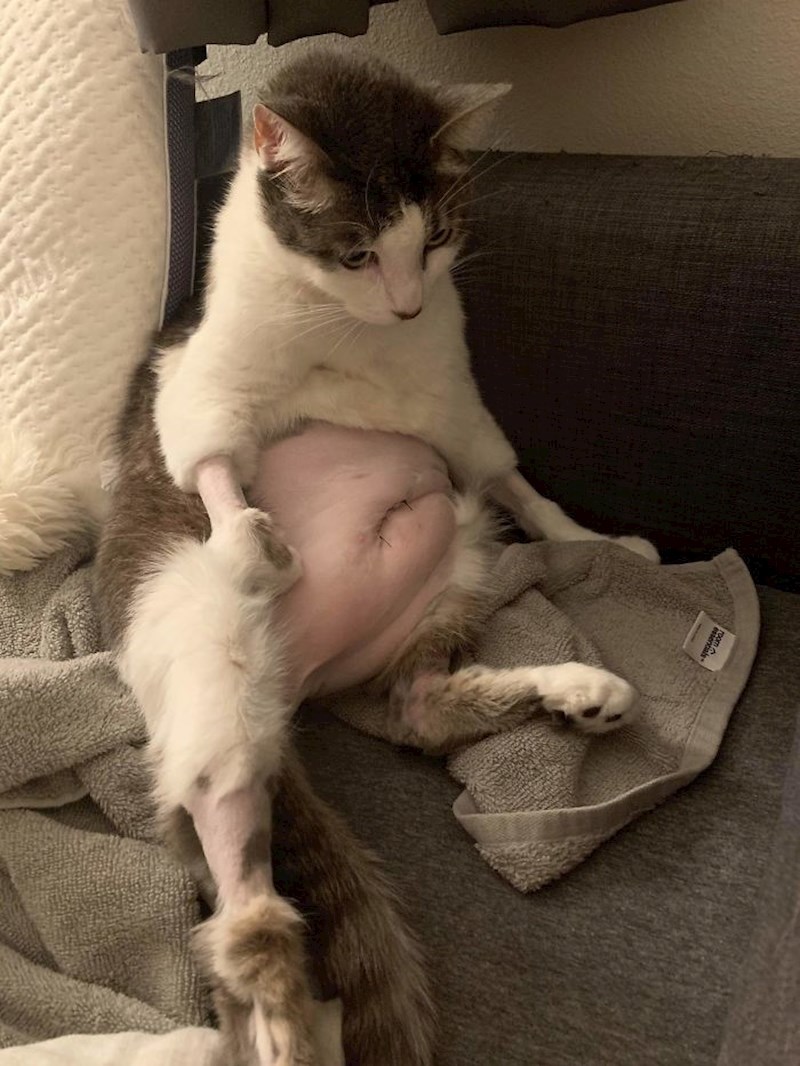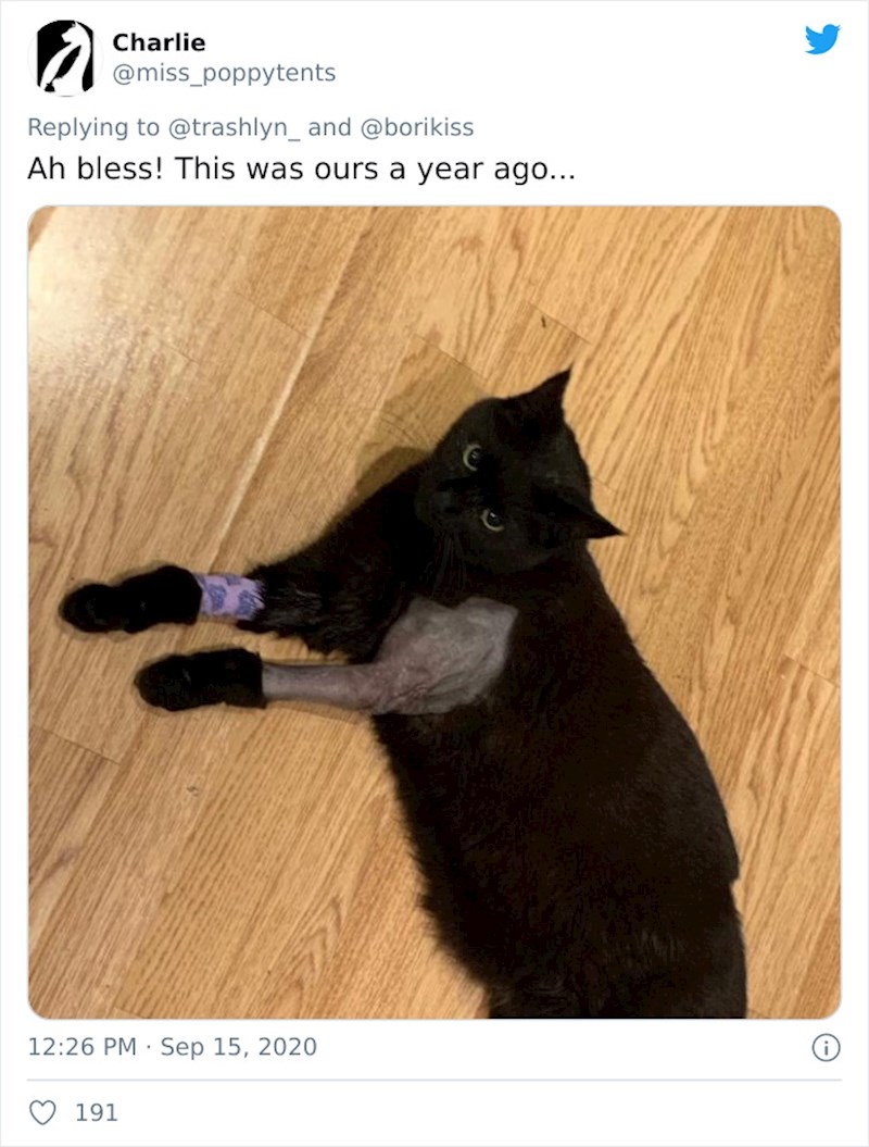 Kada je korisnica Twittera Ash podijelila sliku mačke svoga prijatelja nije mislila da će to postati viralno. Ali, crna maca kojoj su obrijane prednje noge zbog operacije oduševila je internet. Ubrzo su i drugi ljudi počeli objavljivati svoje mačke s istim problemom. :D
