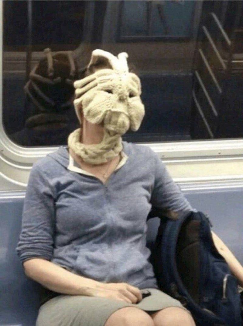 No ova korisnica podzemne željeznice definitivno ulazi u konkurenciju za najbizarniju zaštitnu masku ikad.