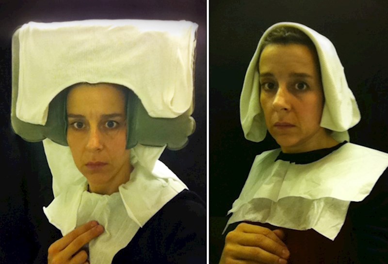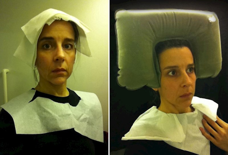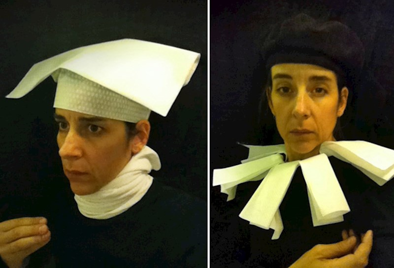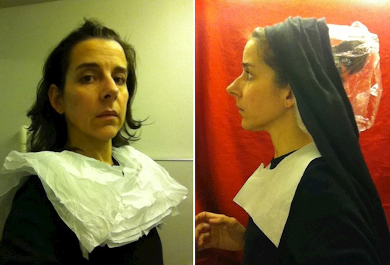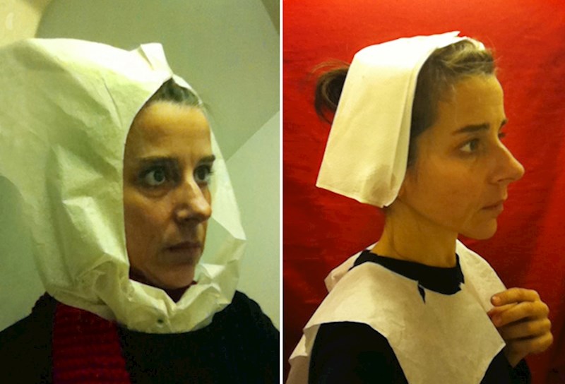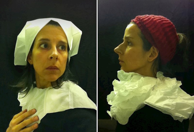 Ona, naime, odlazi u WC aviona i tamo pomoću toaletnog papira i ostalih dostupnih rekvizita pokušava rekreirati srednjovjekovne slike iz Nizozemske.