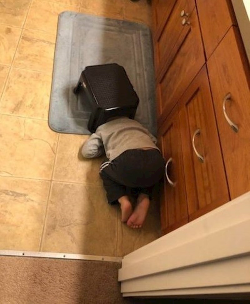 Mališan je dao sve od sebe kako bi se sakrio, ali to mu baš i nije uspjelo. Mami je sigurno trebalo jako dugo da ga pronađe... 😁