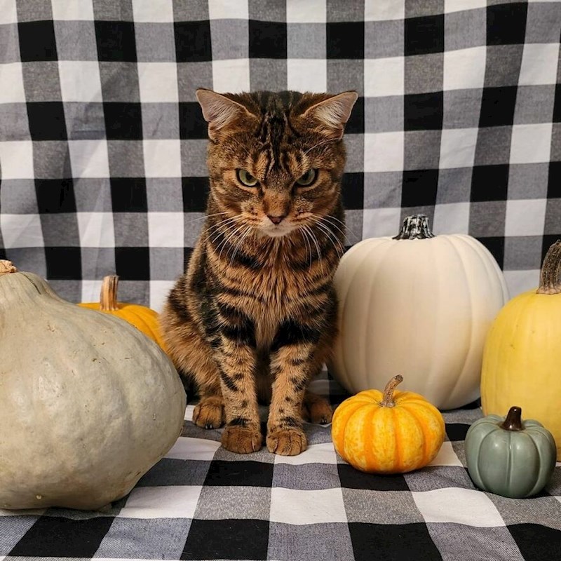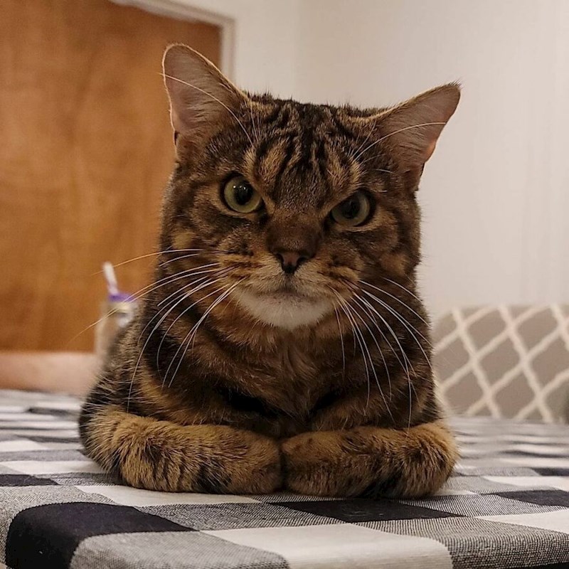 Ovo nije prva namrgođena maca na internetu, ali je prva koja se pojavila u jednom skloništu za životinje u Ohiu. Giggles je vjerojatno imao težak život prije nego su ga pronašli radnici skloništa, ali on nije zbog toga namrgođen. Njegovo lice je jednostavno takvo. On zapravo nije uopće ljut, a iza tog mrkog lica krije se veliko srce.