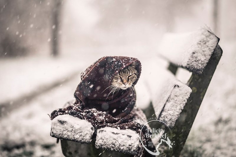 Ljudi koji žive u Nizozemskoj znaju da je snijeg vrlo rijedak. Pa kad je zasniježilo, Felicity je odmah iskoristio trenutak i počeo fotografirati svoje omiljene muze, njegove dvije mačke Nero i Tommie. 😄
