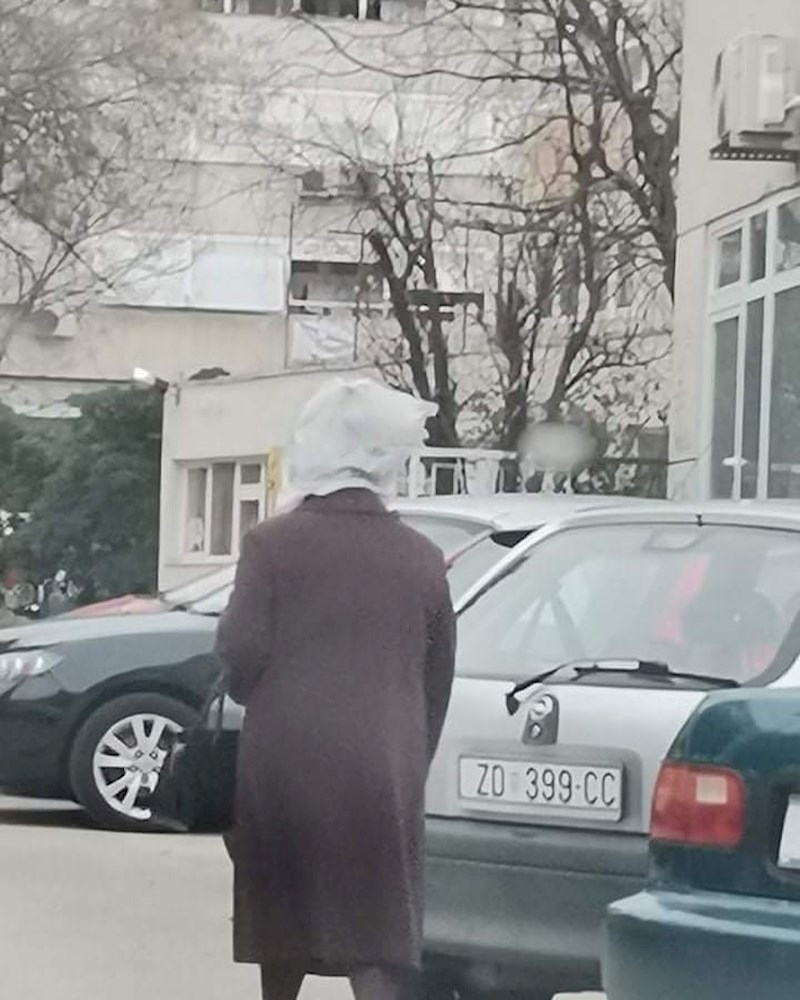 Kada su u pitanju vremenske neprilike ljudima nikada ne nedostaje kreativnosti. Pogledajte što je ova žena odlučila staviti na glavu kako bi se zaštitila, iako nam nije jasno od čega točno, procijenite sami. 😄