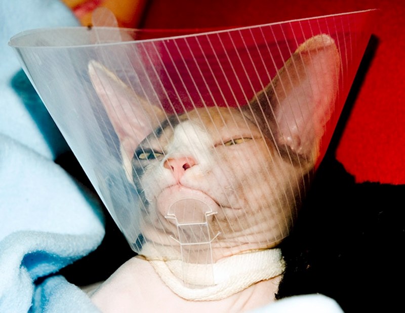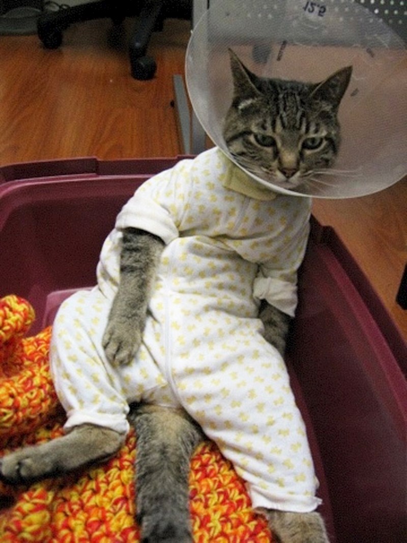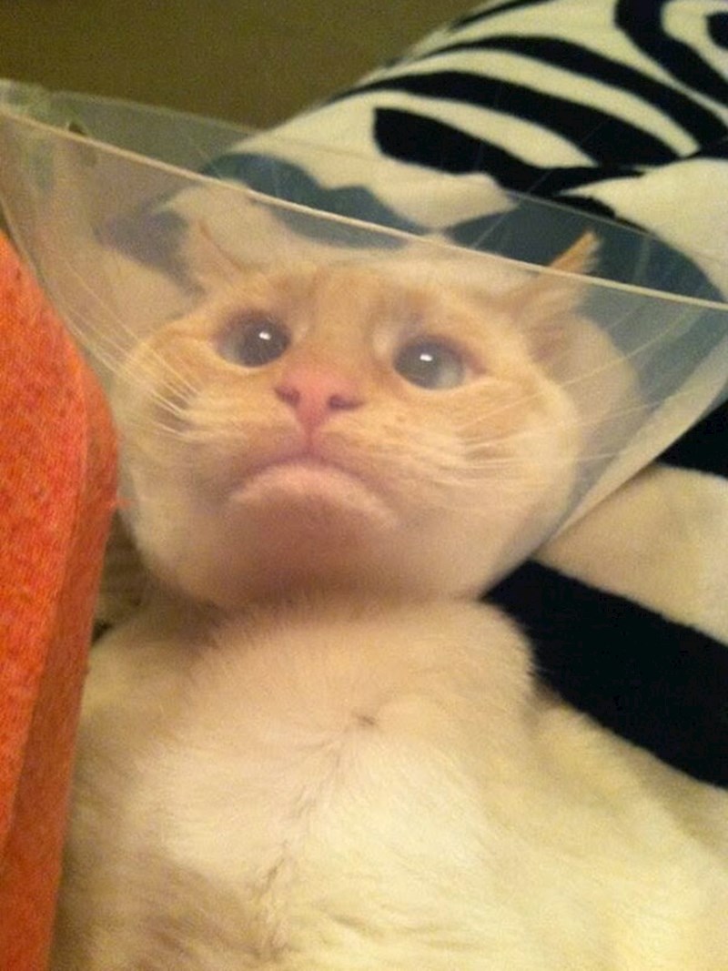 Premda su vlasnici svojim kućnim ljubimcima ove ovratnike stavili iz ljubavi i najbolje namjere, one to nažalost ne mogu razumjeti. Nije im jasno da im ta antena oko glave zapravo služi kako ne bi češkale i lickale nedavno operirana područja i tako ih iziritirala.