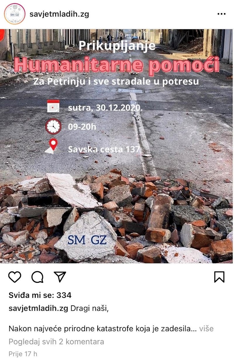 Iz Crvenog križa apeliraju na građane da NE odlaze u Petrinju, da pomoć odnesu direktno u Crveni križ te da se jave njima ako žele volontirati. Nipošto ne djelujte samoinicijativno jer u time možete samo odmoći. Najviše možete pomoći doniranjem krvi.
