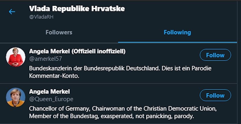 Njihov vrlo aktivan Twitter račun, naime, među profilima koje prati ima i dva računa koja parodiraju njemačku kancelarku Angelu Merkel.