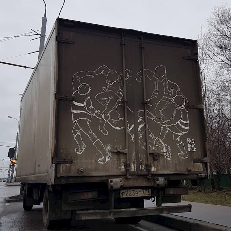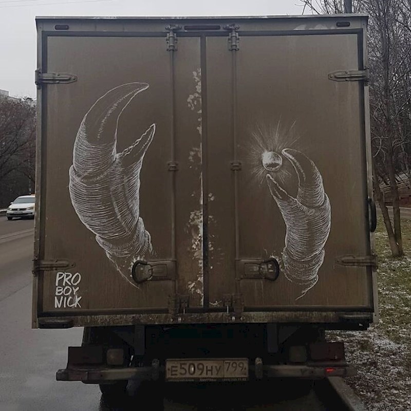 Nevjerojatno talentiran umjetnik iz Rusije, poznat pod nadimkom Pro Boy Nick, postao je prava internet senzacija kada se saznalo da je upravo on odgovoran za niz pravih umjetničkih djela nastalih na - prljavim kamionima i automobilima.