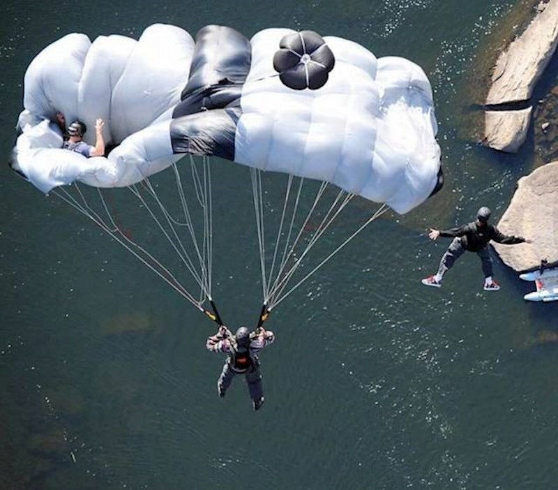 Nažalost može se dogoditi da se padobran pri padu ne otvori, na svu sreću ovdje se radi o nešto drugačijoj situaciji. Iako može biti kobna, pretpostavljamo da se ovaj padobranac uspio podignuti vlastitim padobranom koji se krenuo otvarati.