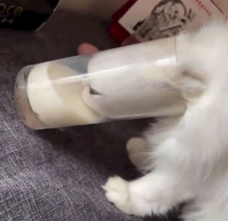 Ova mačka očito je jako slaba na mlijeko i nije mogla odoljeti porivu da ne pokuša na sve načine dođi do kojeg liza tog prefinog napitka.