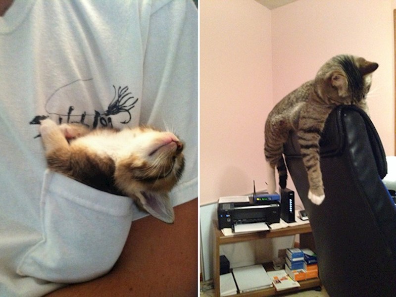 Mačke često znaju upasti u neki svoj film i ponašati se totalno čudno. Takvo ponašanje ponekad uključuje spavanje u neobičnim pozama, ponekad divljanje po kući, a ponekad zaista čudne izraze lica.