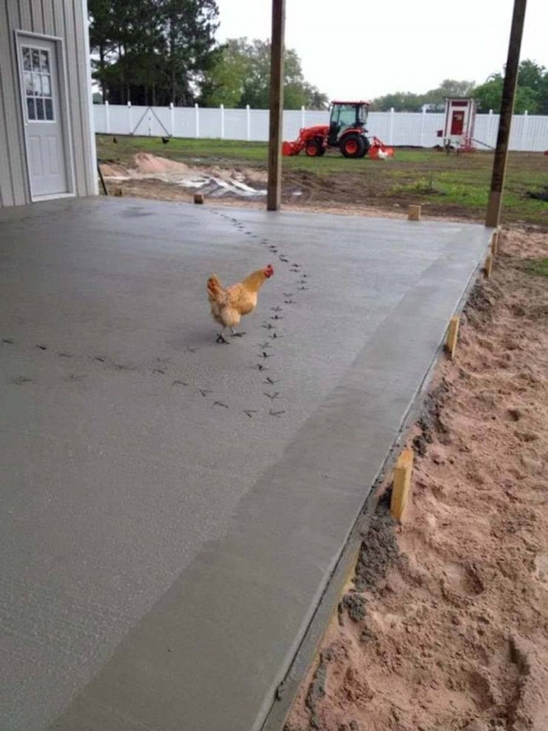 Ma tko od nas ovo nije poželio napraviti kad vidi svježi beton. Ova kokoš nije mislila ni sekunde :D