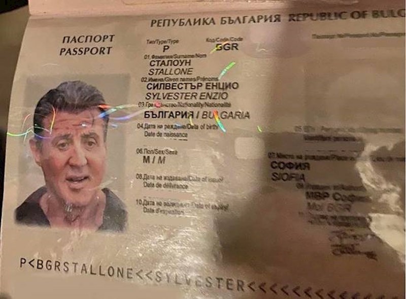 Naime, očigledno lažna putovnica "izdana" je na ime slavnog glumca Sylvestera Stallonea. Na njoj je ime i prezime glumca te njegova fotografija na kojoj stoji otvorenih usta što je, naravno, zabranjeno prilikom fotografiranja za službene dokumente.