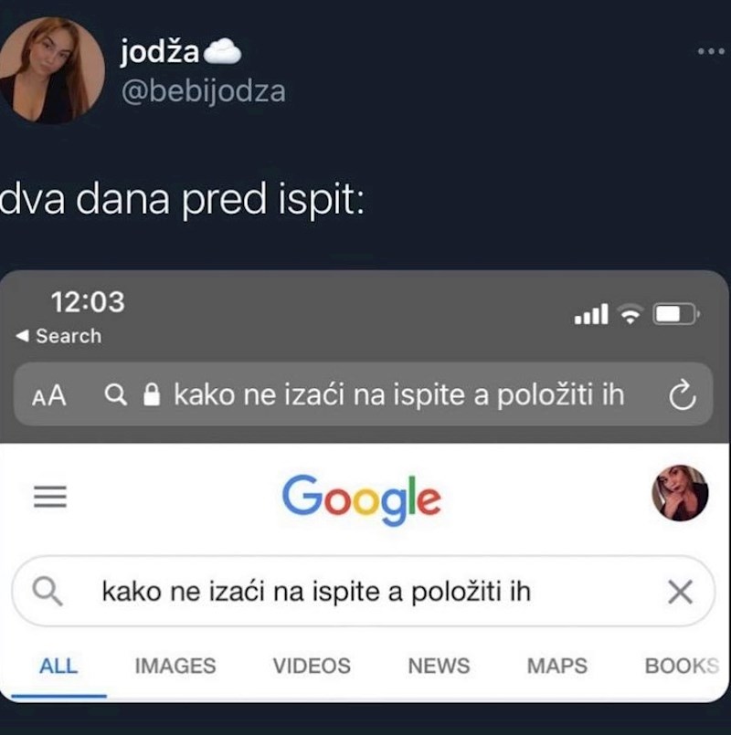 Ova presmiješna fora koju smo iskopali s Facebooka iskreno će nasmijati svakog studenta jer savršeno opisuje probleme u kojima se većina njih nađe nekoliko dana prije izlaska na ispit. 🤣