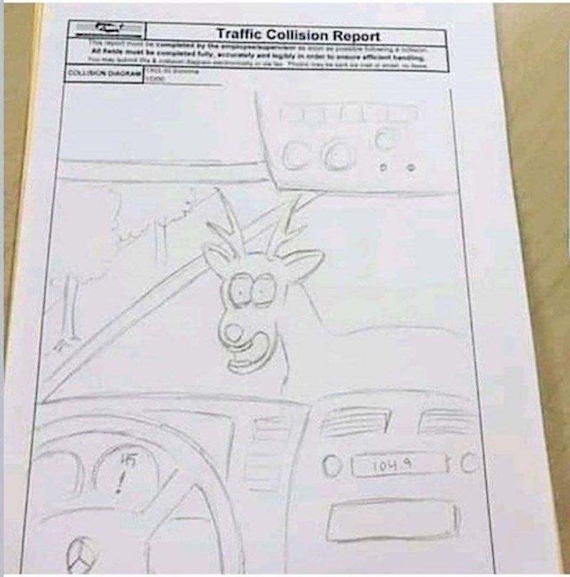 Iako nije uobičajeno, ovaj izvještaj u obliku crteža dobro je opisao o kakvoj se prometnoj nezgodi radilo.