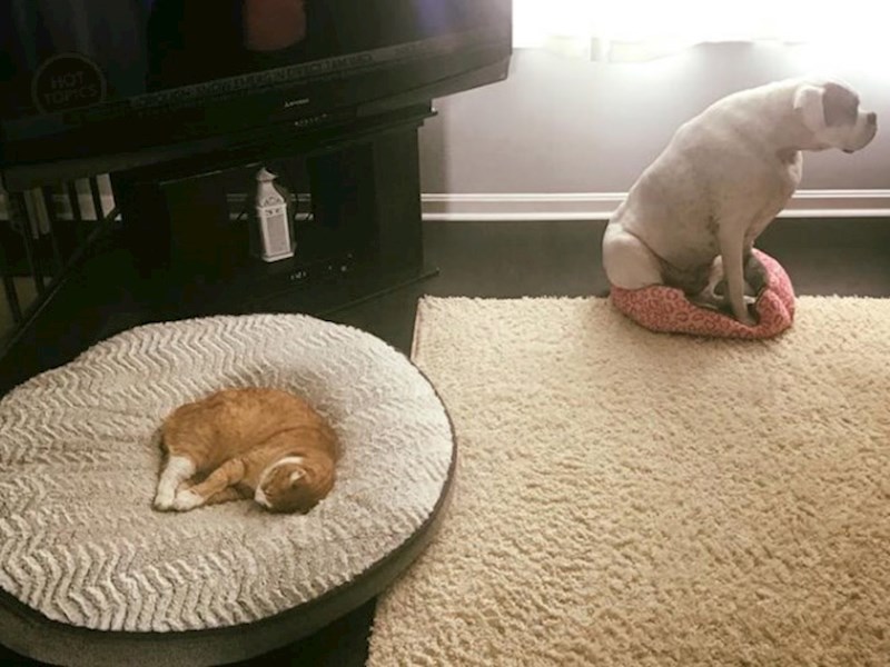 Mačke su prirodne šefice i u životu kraj mace koja zna kako se postaviti jedan pas nema nikakve šanse za biti na vrhu hijerarhijske ljestvice. 😊