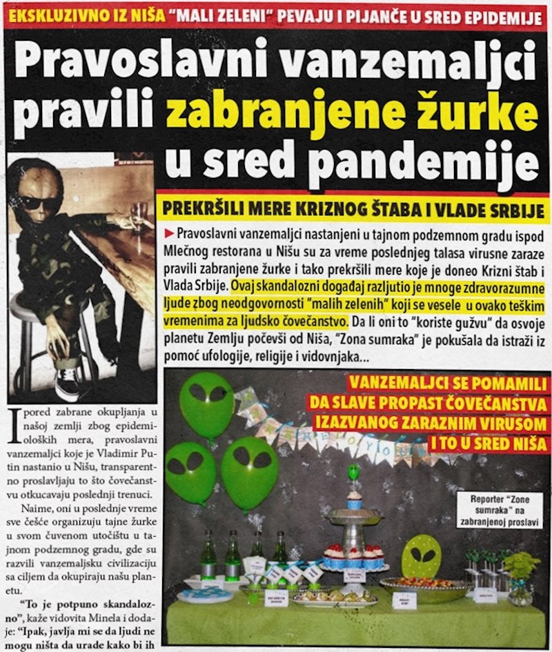 S obzirom na svijet u kojem živimo, ni ne sumnjamo da ima jako puno ljudi koji vjeruju u svako slovo napisano u ovom tekstu. Tekstu o tulumima svemiraca u Nišu.
