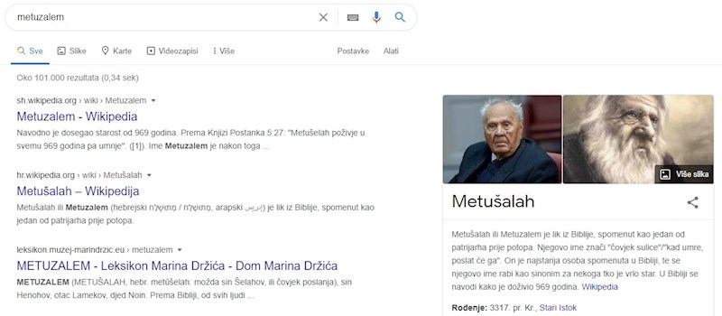 Kad upišete "Metuzalem" u Google prvo vam izbaci jednog poznatog Hrvata. Možete li pogoditi koga?