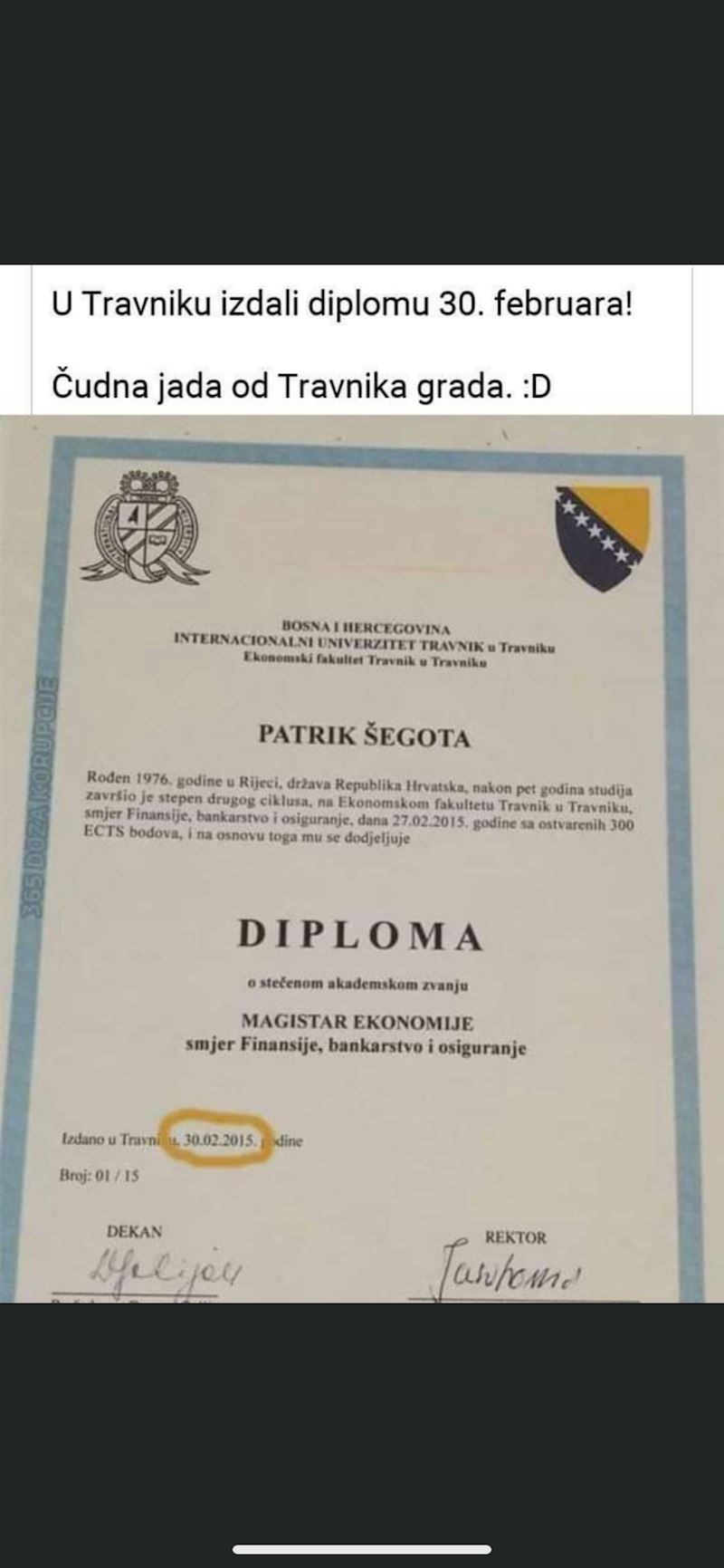Datum na koji je u Travniku izdana ova diploma otkrio je da je riječ o običnoj muljaži