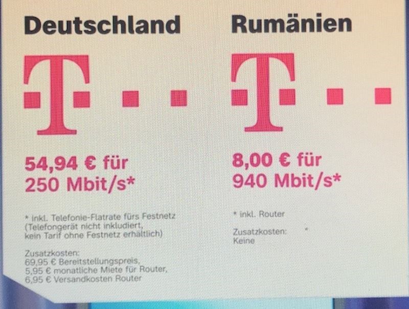 Iako je u Rumunjskoj garantirana brzina višestruko veća, cijena iznosi nestvarnih 8 eura mjesečno, dok je u Njemačkoj čak 55 eura.