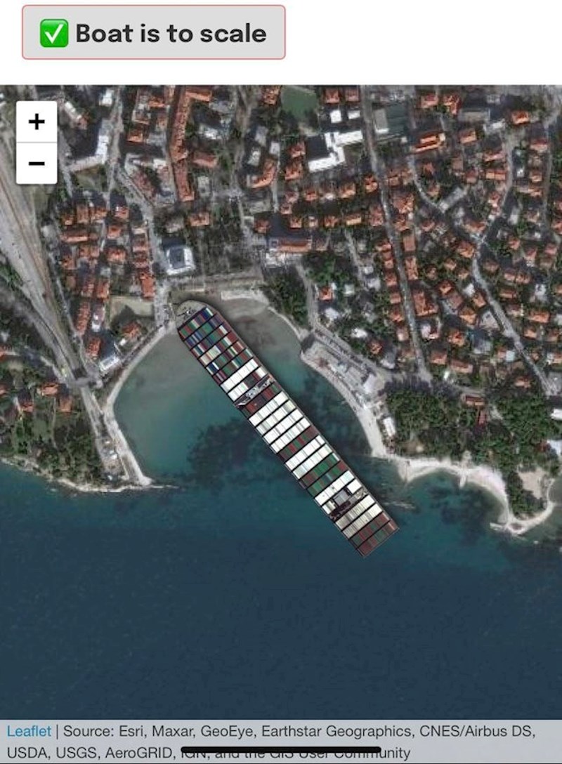 Naime, netko je napravio simulaciju iz zraka iz koje je vidljivo kako bi izgledalo da je Evergreenov brod zapeo na splitskim Bačvicama.