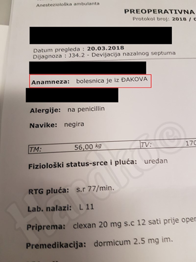 Jednoj pacijentici na nalazu iz anesteziološke ambulante piše nešto što je uspjelo začuditi i zabaviti ljude na Fejsu.