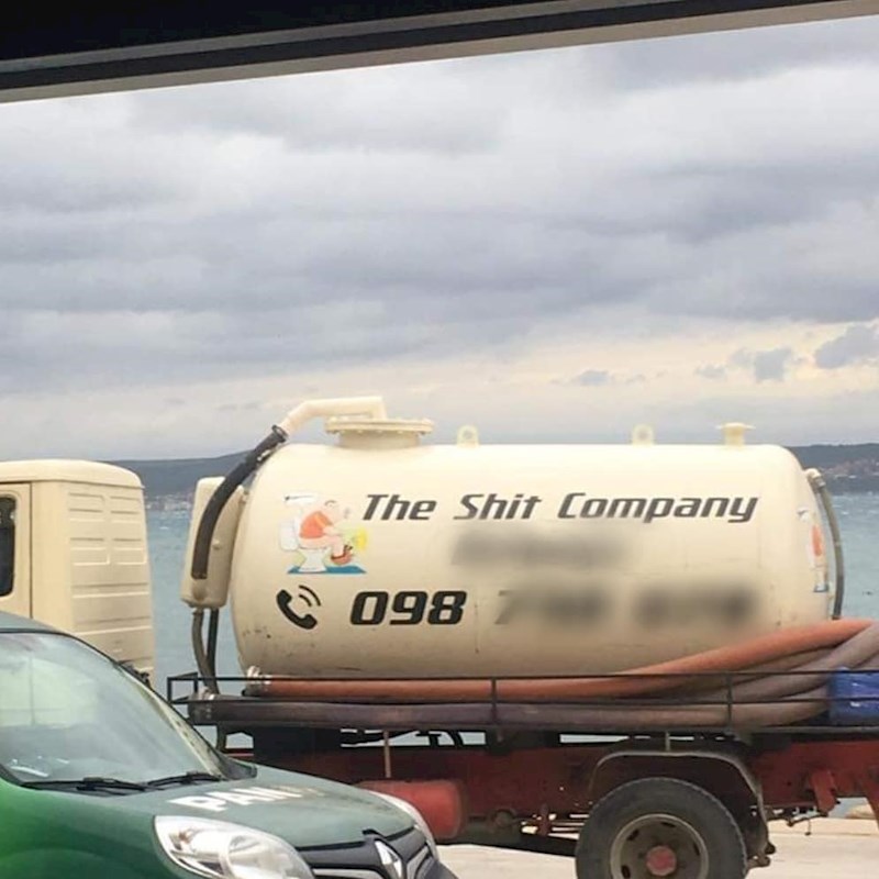 "The shit company" stoji natpis na cisterni, a fotka je već nasmijala tisuće ljudi na Facebooku. Stanovnici Pašmana pišu i kako postoji još kamiona spomenute tvrtke na kojima je drugi vrlo iskren slogan: Vi punite, mi praznimo.
