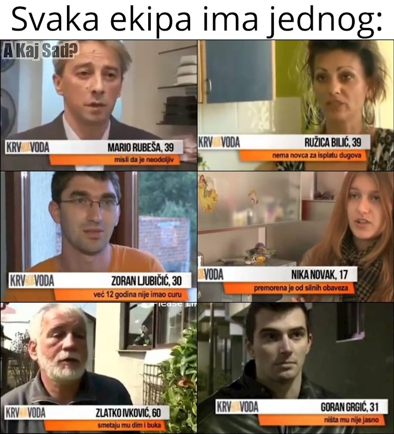 Netko je skužio da u svakoj ekipi postoji lik iz treš serije Krv nije voda, pronađite sebe