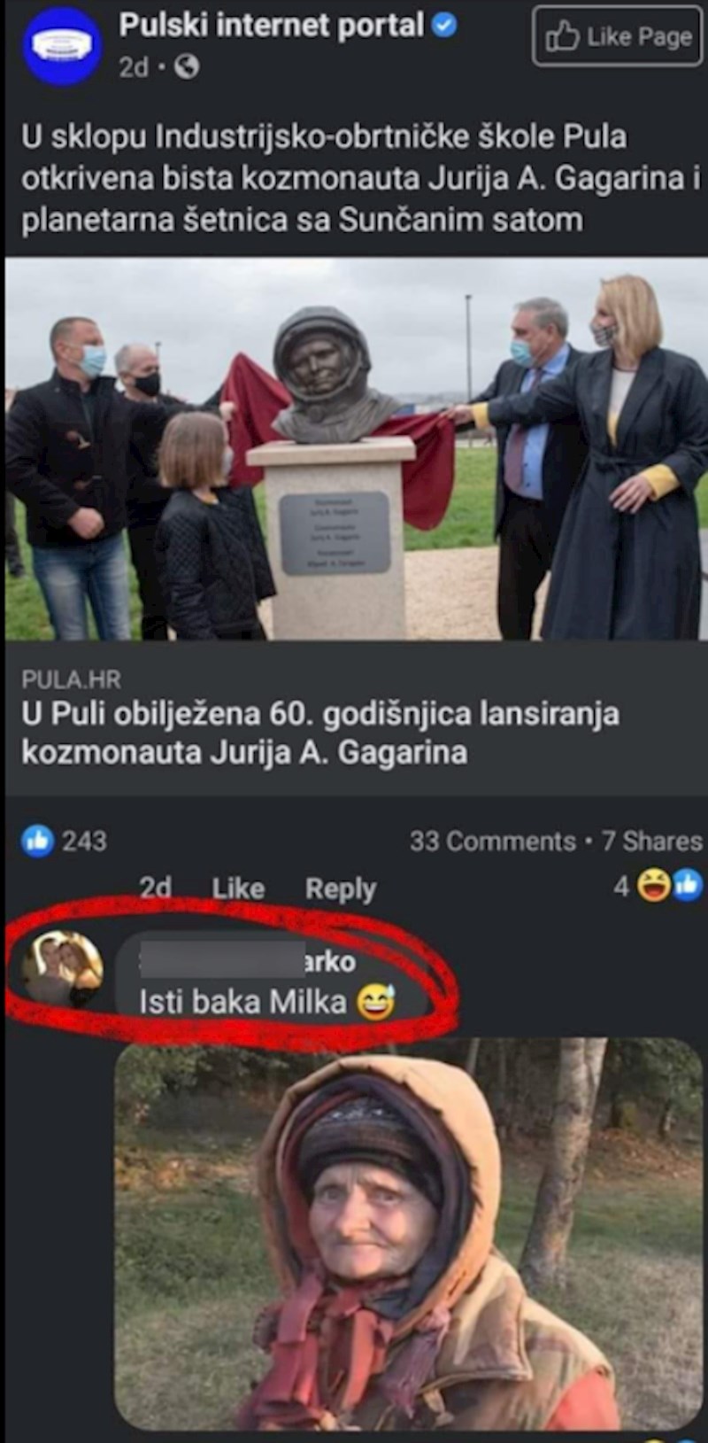 U Puli su otkrili spomenik Gagarinu, tip u komentaru otkrio na koga sliči i svi umiru od smijeha