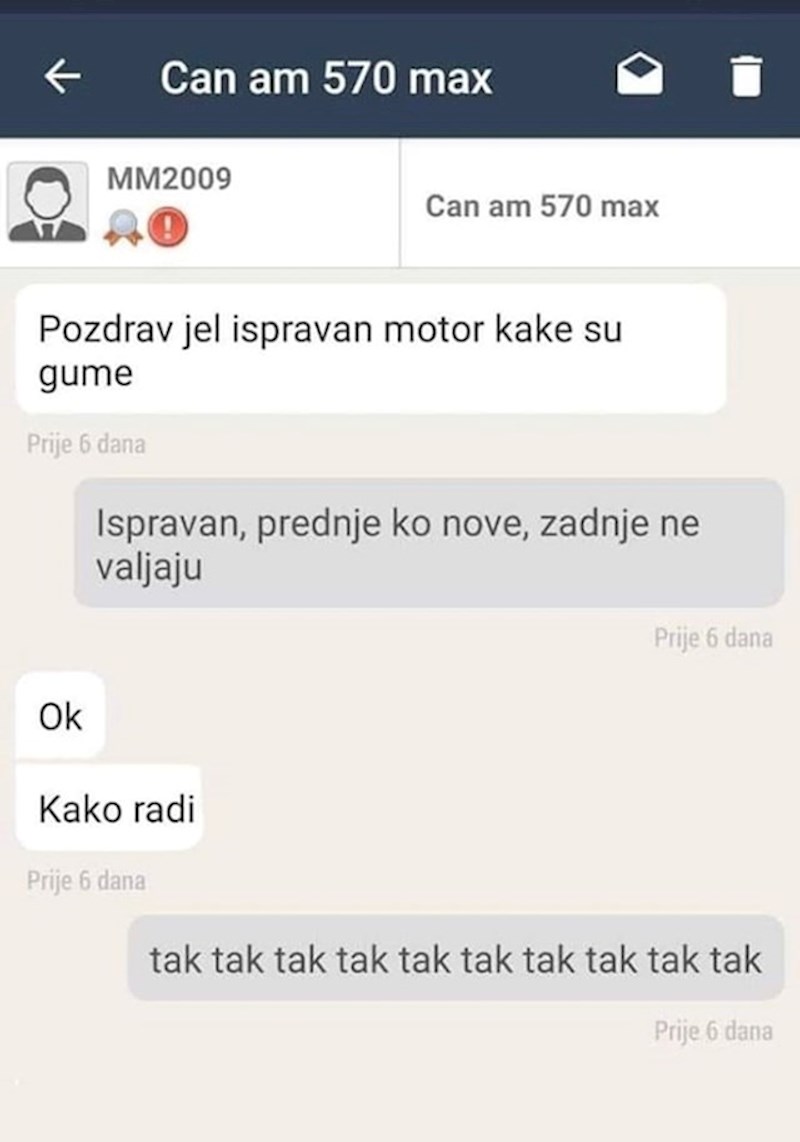 Čovjek se javio na oglas za quad, počeo se smijati kad je vidio zadnju poruku prodavača